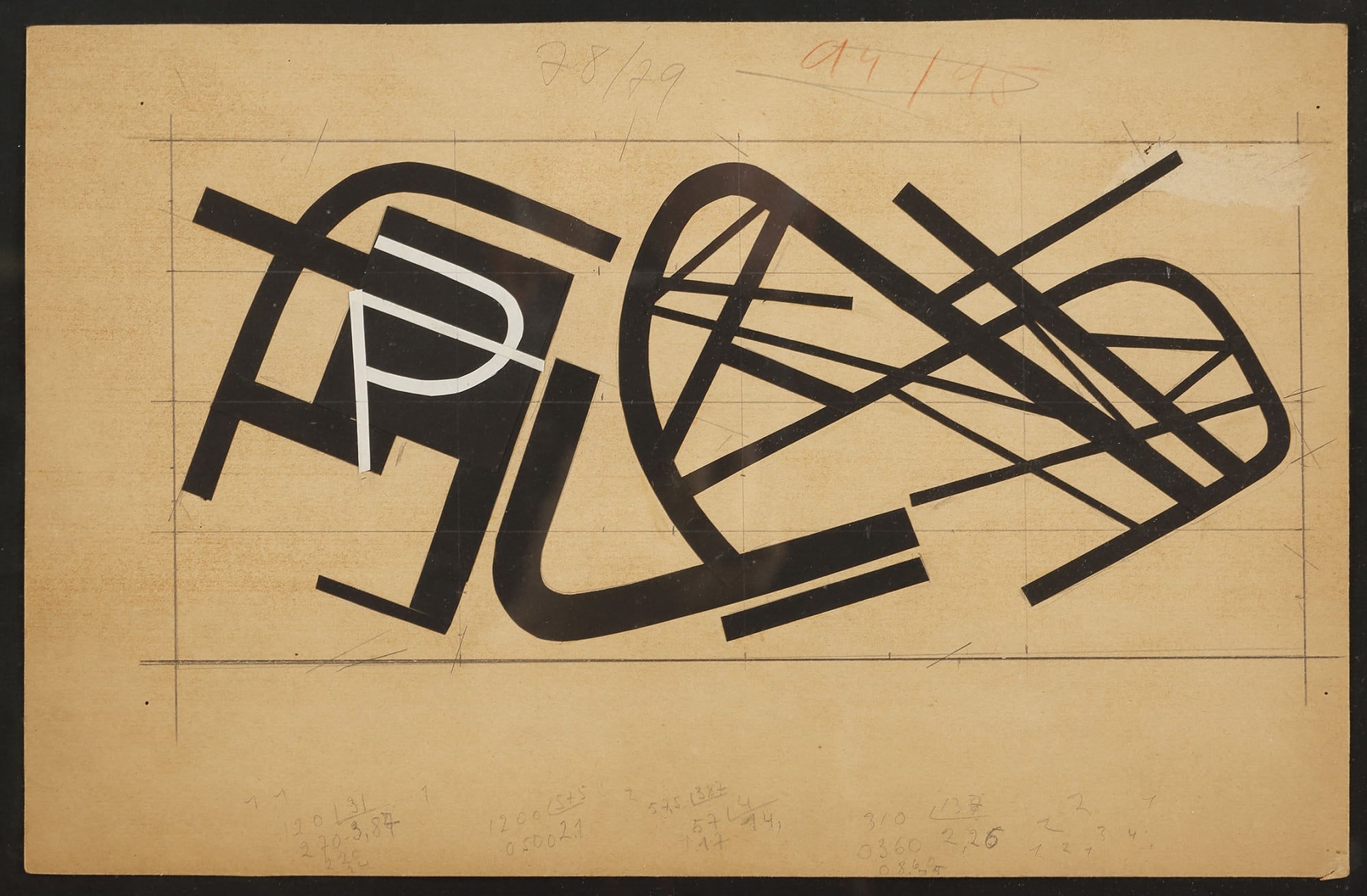 Outils intermédiaires de création, les "esquisses" de Pillet des années cinquante- soixante sont constituées de formes découpées de papier noirs et blancs. Il joue avec ces formes, les assemble, les combine.