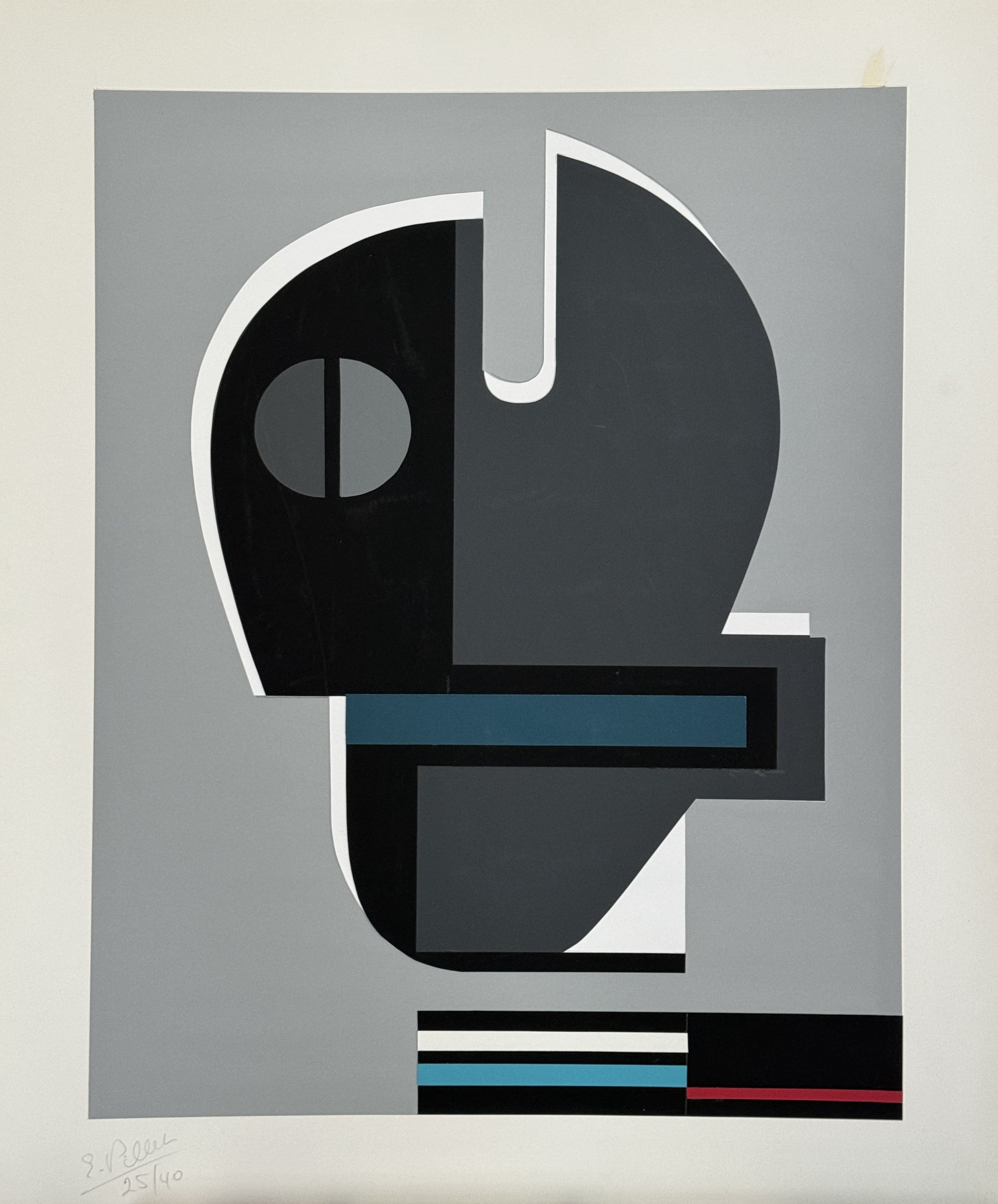 Collage de papiers de couleurs comme fin en soi, Pillet a inventé le multiple en collage. A partir de gabarits, un collage est "tiré" en un nombre limité, comme une gravure.